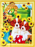 Алмазная вышивка «Щенки среди садовых цветов» 40x50 см