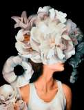 Картина по номерам «Девушка в белой майке с большими цветами на голове» 40x50 см