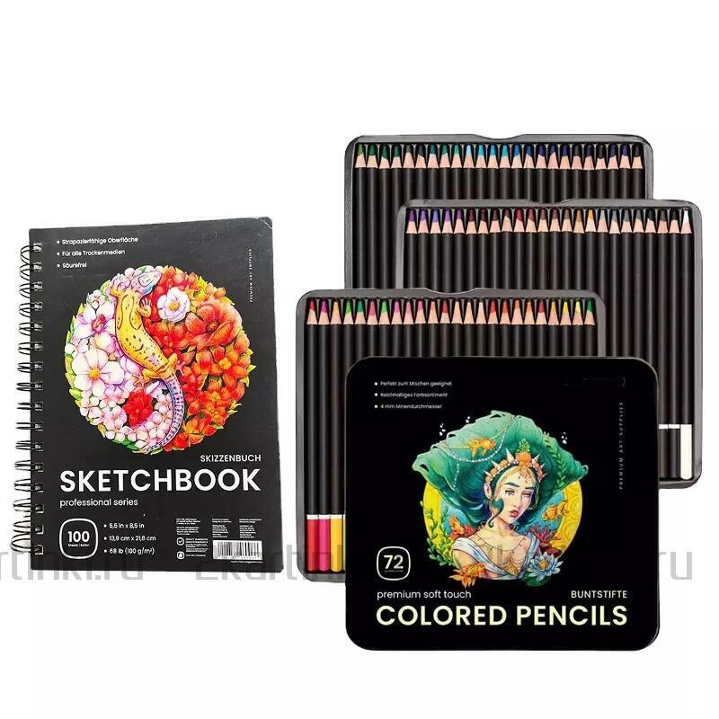 • Особенности 3 скетчбука, карандаши 72 цвета