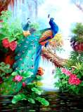 Алмазная вышивка «Красочные павлины над рекой» 40x50 см