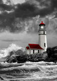 Алмазная вышивка «Маяк с красной крышей в штормовом море» 40x50 см
