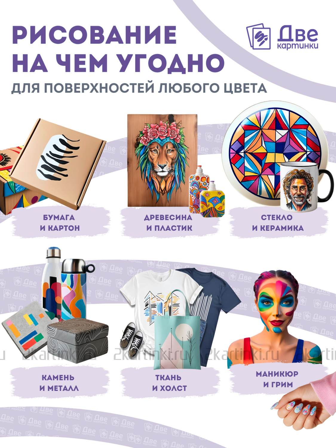 Интернет-магазин раскрасок и живописи «Две картинки» предлагает большой ассортимент товаров в наличии. Продажа оптом и в розницу.