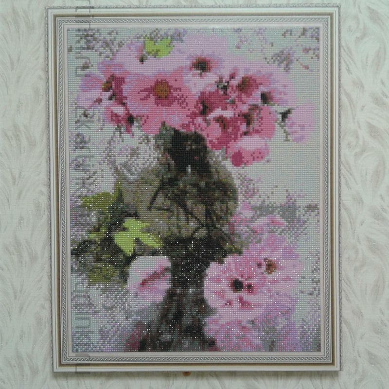 Получилась нежная красивая картина. Стразов много, еще остались. Качество хорошее.