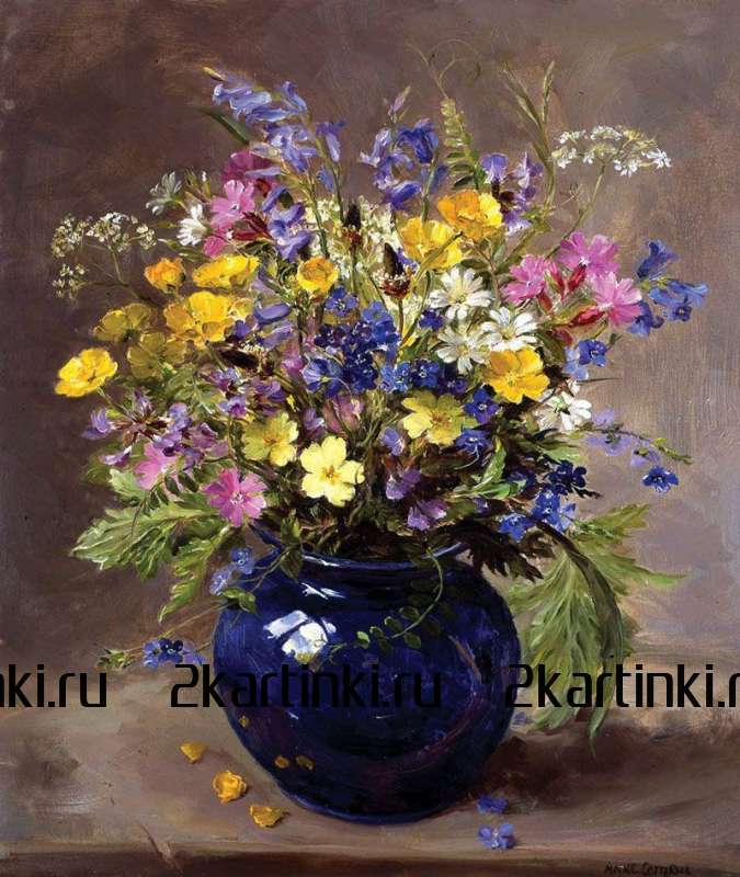 Картина по номерам «Полевой букетик в синей круглой вазе» размером 40x50 см см. купить по выгодной цене 597 ₽ с доставкой по Москве и всей России.