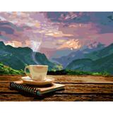 Картина по номерам «Свежий кофе на фоне горного ущелья» 40x50 см